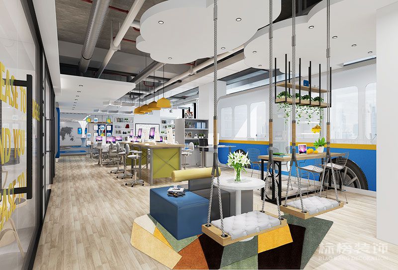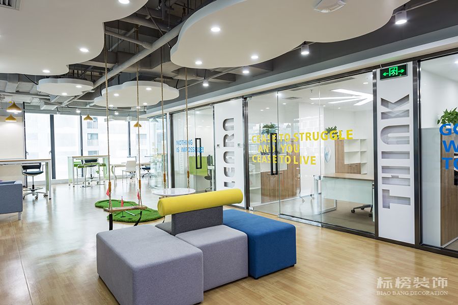 開放的設(shè)計思路及風(fēng)格,為企業(yè)形象增光添彩,給員工關(guān)懷減壓。歡快的色彩,多元化的造型,以及硬裝及軟裝的搭配設(shè)計,更易于工作者調(diào)節(jié)心情與開拓思路,間接的提升了工作效率及質(zhì)量。